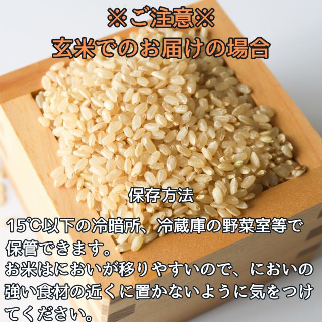 | 保存方法 | 玄米なら、15度以下の低温倉庫で保管可能です。精米したものは、直射日光、高温多湿を避け冷暗所にて保存し、お早めにお召し上がりください。 |